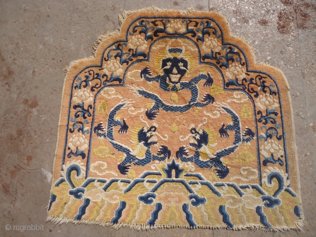 Ningxia Seating Back rug ?.with three dragons,good age and condition without any repair or work done.Size 2'5"*2'4".E.mail for more info and pics.