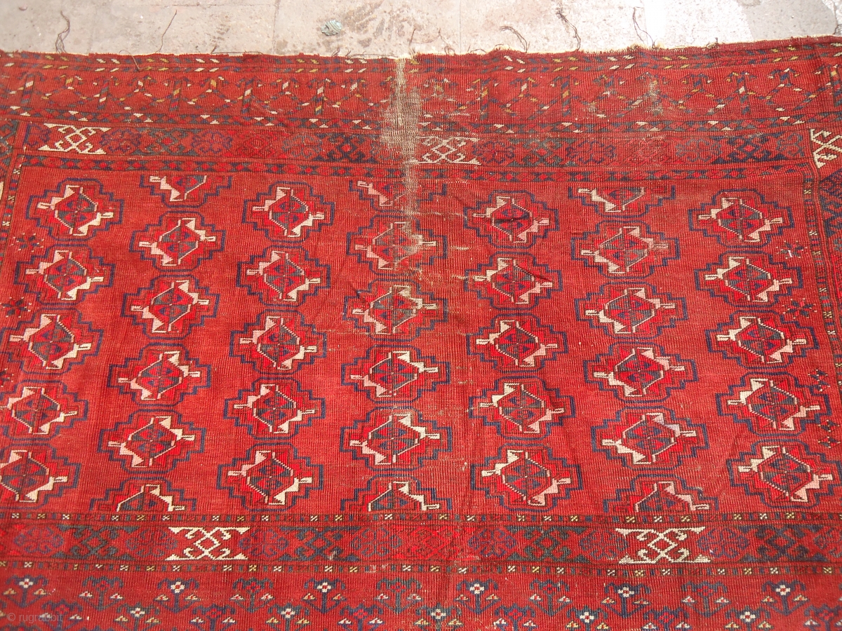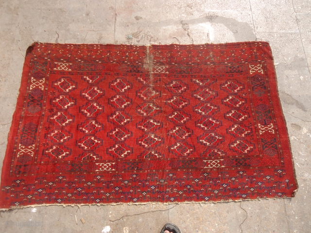 Large Chuval with very nice design but little worn,fine weave,nice lower border.All original without any repair or work done.Some early analine red dye. Size 5'1"*3ft. E.mail for more info and pics