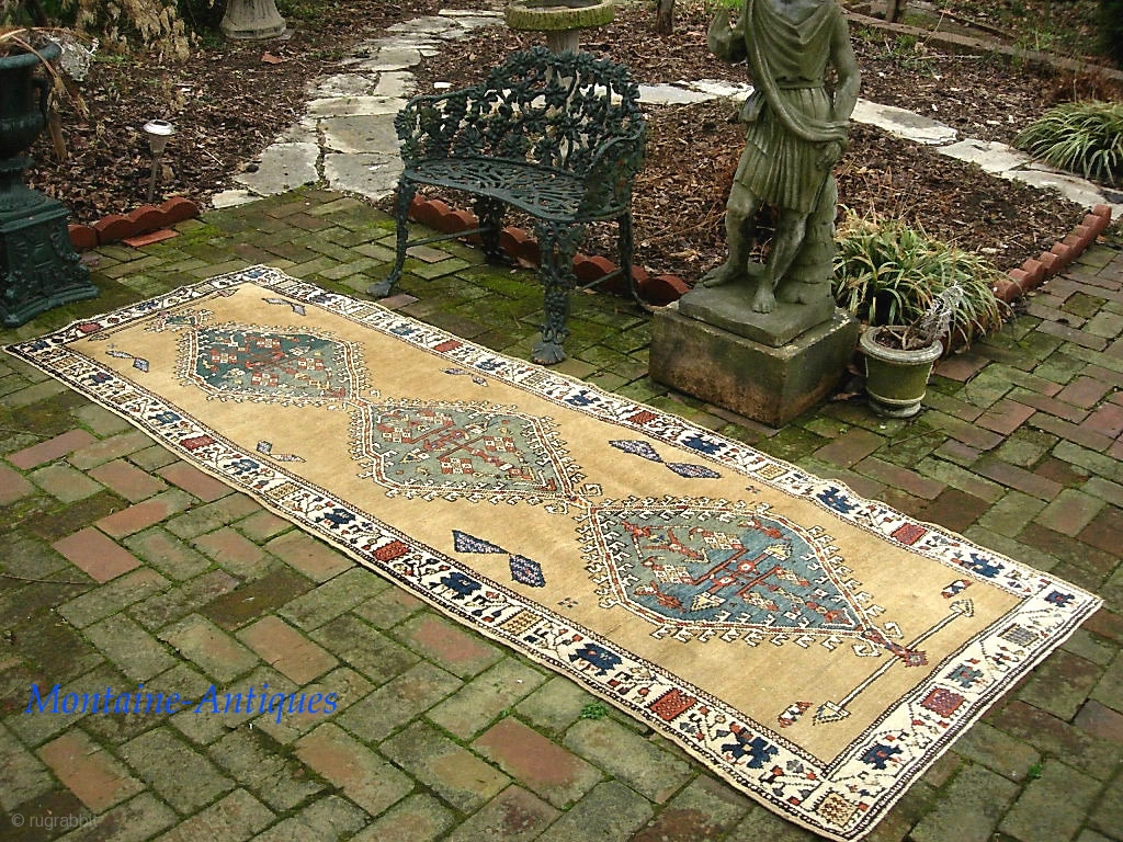 Serab-- 3 ft 2 in x 9 ft. This is a real old one with very open, archaic design. Soft floppy texture. Low but even pile. Not perfect condition but quite good for its age. $25 ups to lower 48.