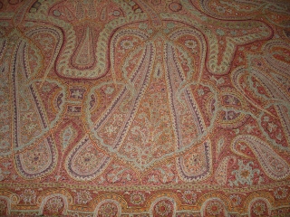 Kashmir Embroidered Rumal on the Pashmina,From Kashmir India.Highly Sikh Period C.1850.With Signature of the owner.Its size is 175cmX188cm.(DSC01034 New).