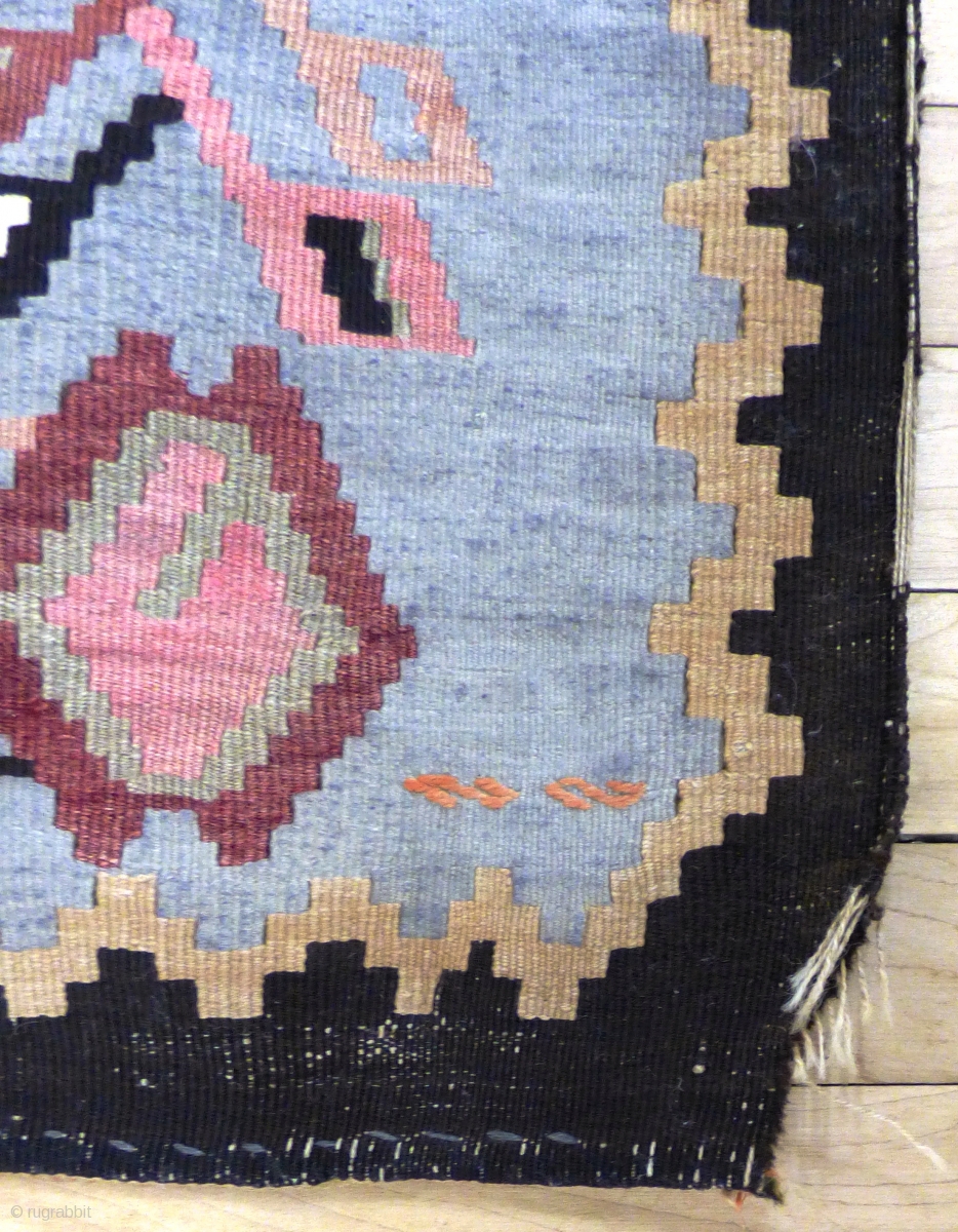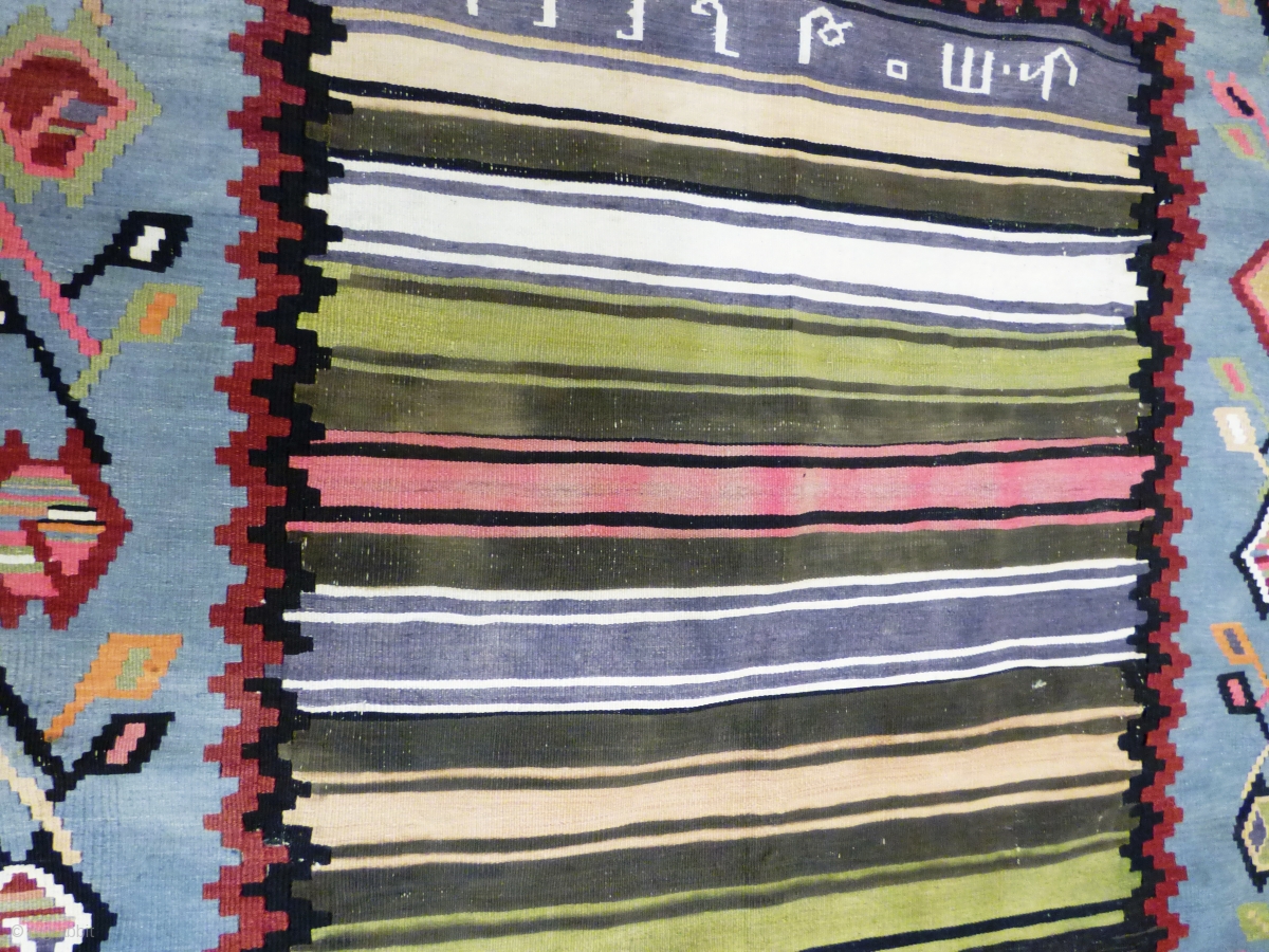 European Balkans ? Kilim. Dated 1932. Wool and Cotton white details. Wear and minor colour run - see photos. Size: 7 ft x 4 ft 4 in 2.13 m x 1.32 m