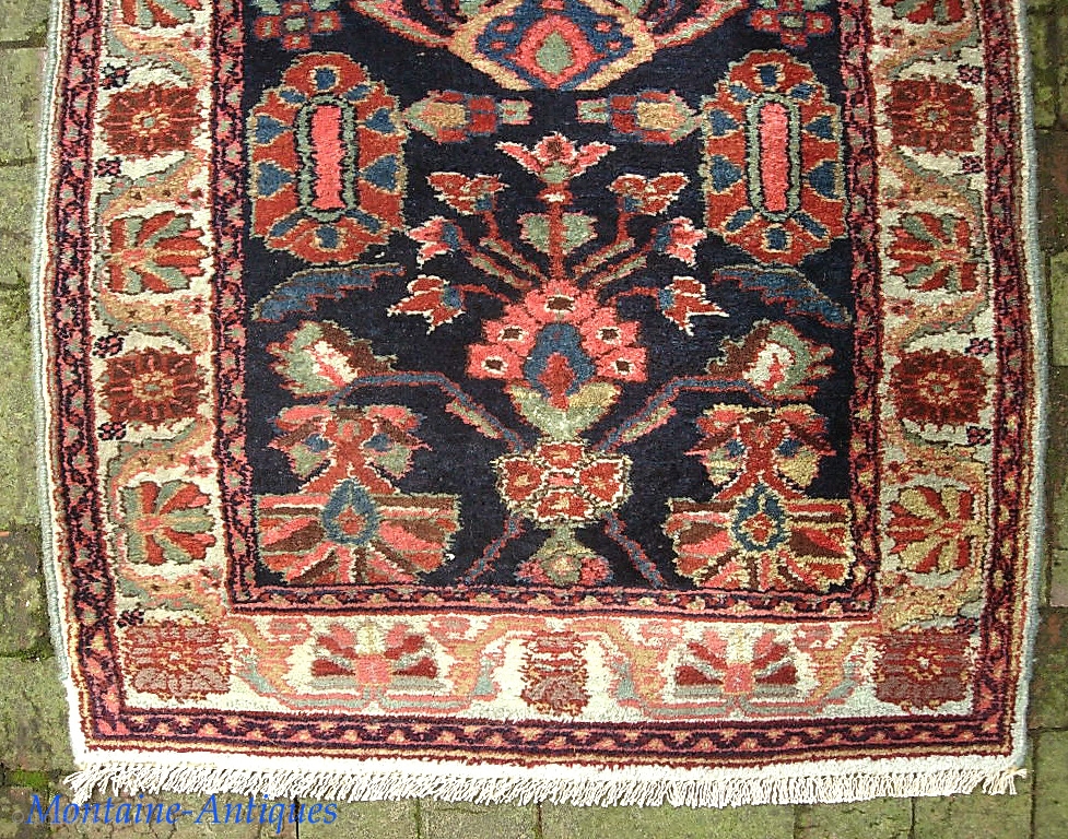 Mehriban Runner-- 2 ft 10 x 9 ft 8. Art deco piece in useful narrow size. Mint condition. Incredibly thick and heavy with beautiful soft colors. Much prettier than the photos indicate.
