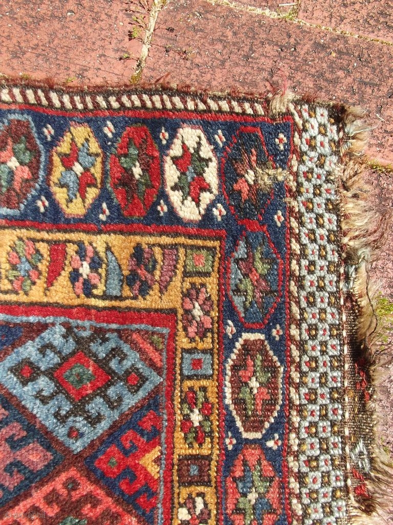 Terrific quality 19c Jaff bagface with superior color - i count 14 wonderful natural colours including a lovely rare yellow and gold border and a great aubergine. Note too the light turquoise in the end panel
