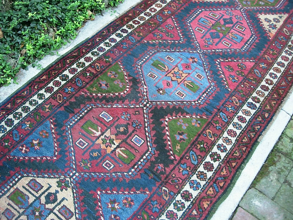 Kurdish 3 ft 4 in x 13 ft 6 in. Thick, plush; supple. Brown wool foundation with original chunky braided ends. $35 ups to Lower 48. Check out recent finds @ http://www.montaine-antiques.com/oriental-rugs/