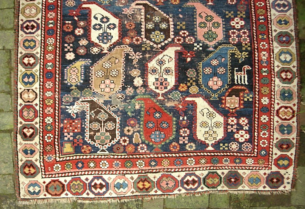 Boteah Kazak 4 ft 9 in x 8 ft 1 in. Beautiful ancient thing in as-found condition. $20 ups to Lower 48. Check out recent finds @ http://www.montaine-antiques.com/oriental-rugs/