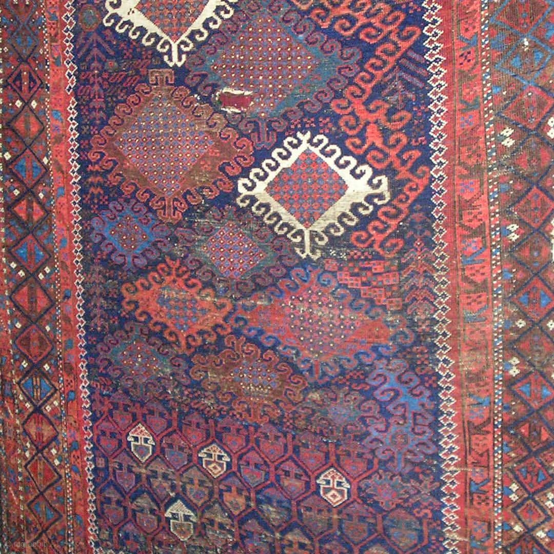 Baluch main carpet with a dramatic pattern shift. Western Afghanistan, some time in the 19th century.