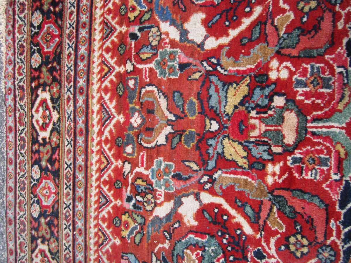 great rare squarish old mahal persian rug good general condition worn fringes couple of low spot nothing major great colors very floppy measures 8' 11" x 10' 2" cheap money