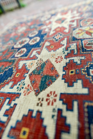 Mid 1800 dated signed Caucasian Star Shirvan runner