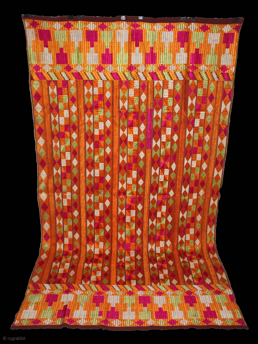 Phulkari from East (India) Punjab India Called As Bagh. Its size is 127cm x 228cm.Rare Design.Extremely Fine Phulkari.(DSE01590).