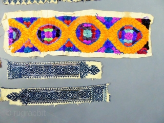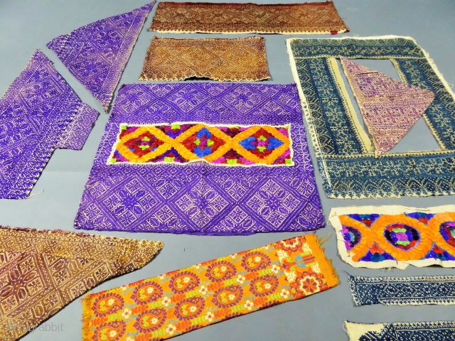 Fès and Rabat embroideries... 12 pieces for cushions or decoration. Morocco 19e. very rare colors and thin embroideries. Measures of the more longer 51 cm x 54 cm, 70 cm x 48 cm, 23 cm x 74 cm.