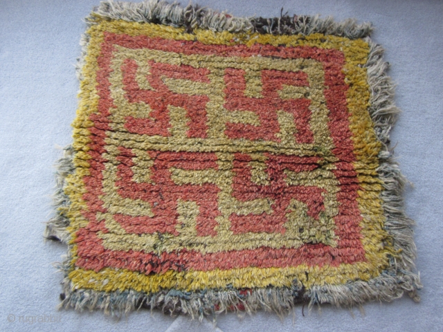 Tibetan wangden monastic meditation seating square with a Five swastika design. This is a rare and early piece.