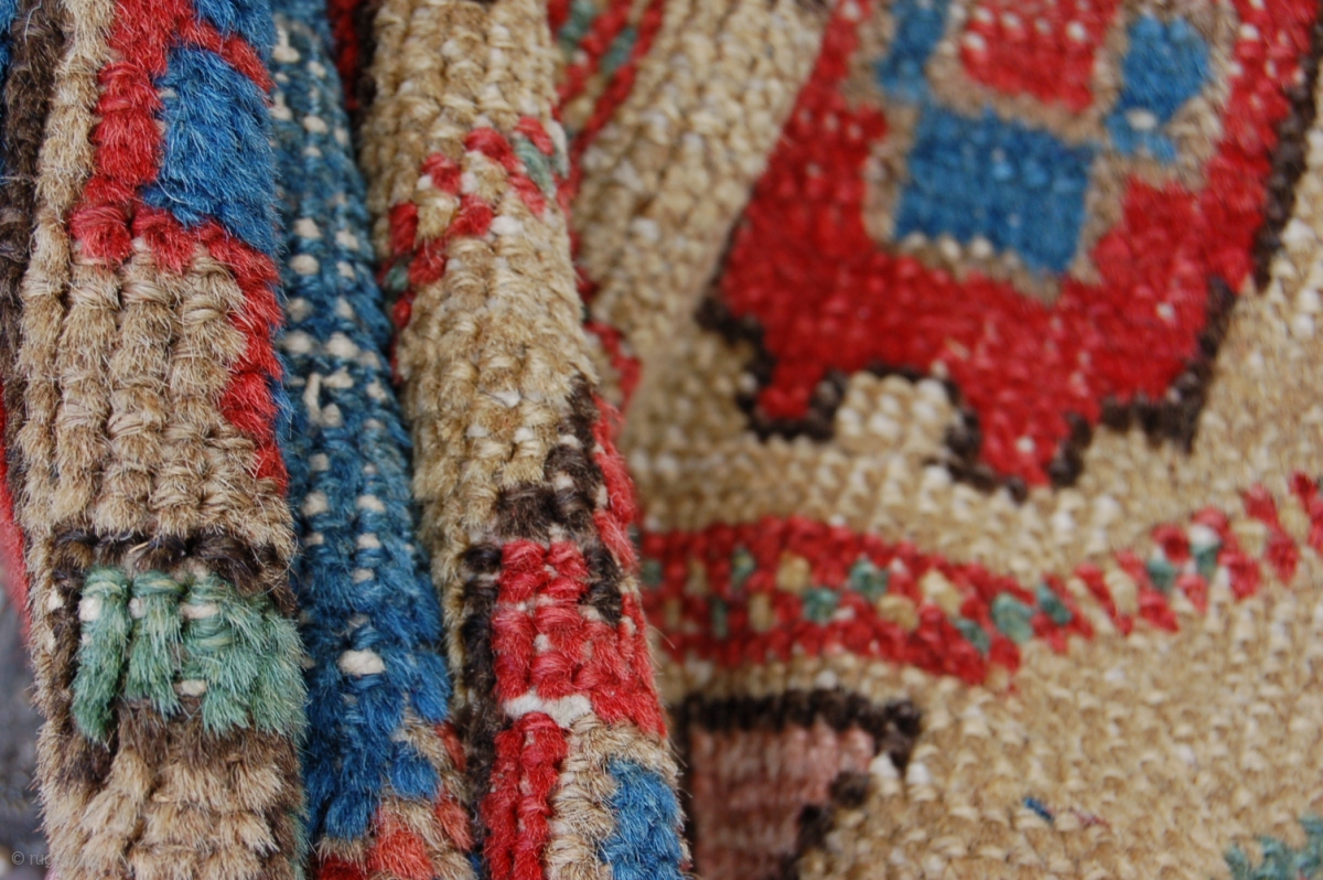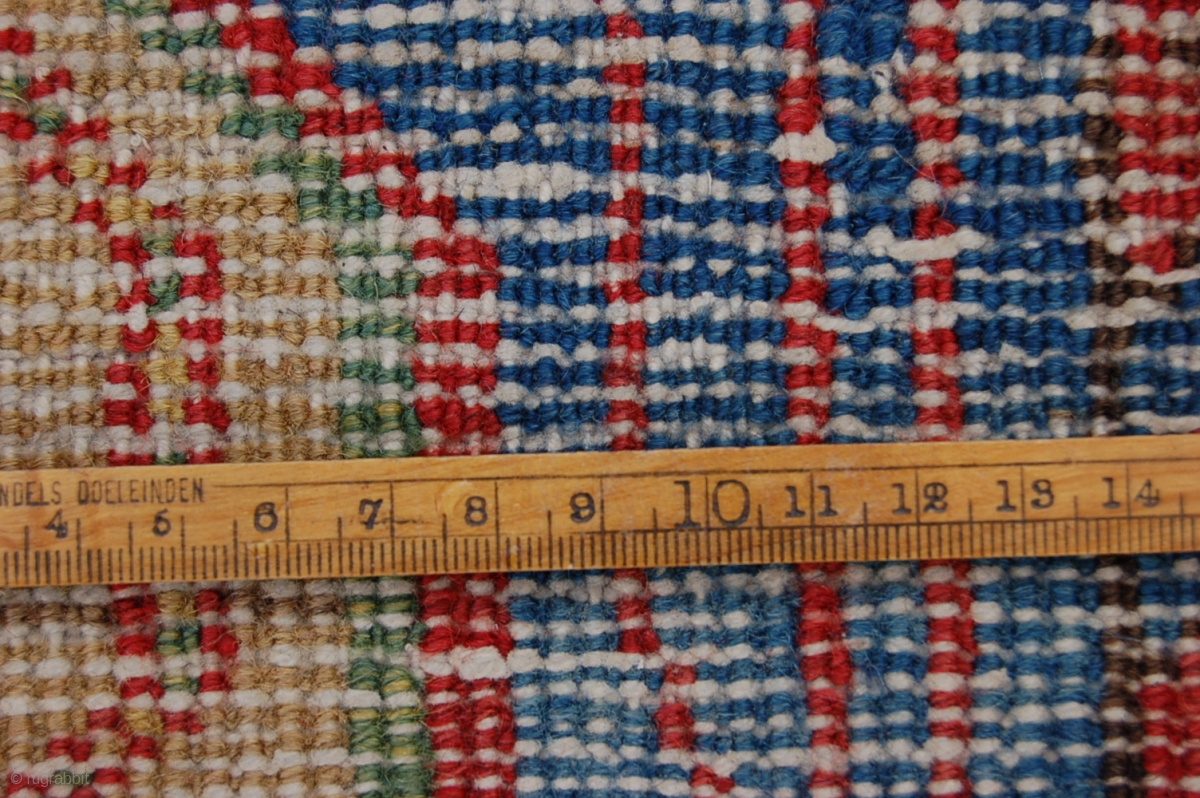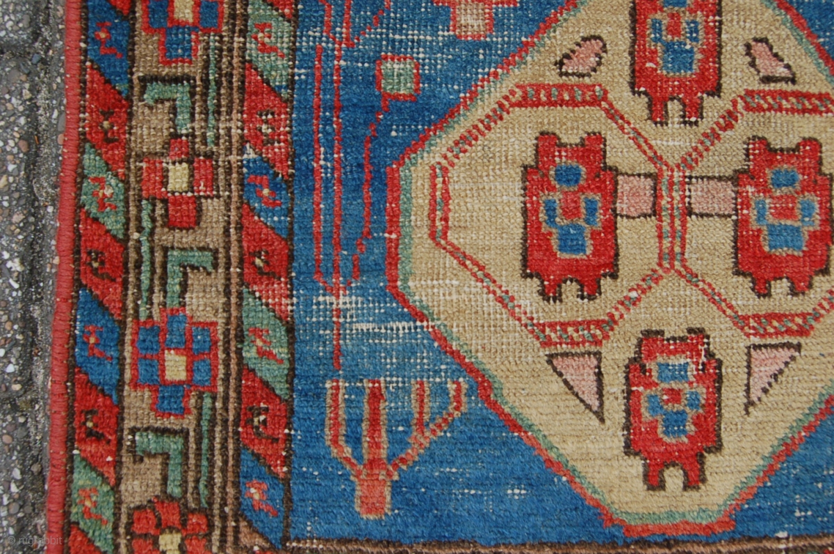 Antique North West Persian Heriz area village rug 141 x 76 cm (4ft 8" x 2ft 6") Last quarter 19th century. All natural dyes. Condition: used, good evenly low pile with some wear at places, original sides reduced and rewrapped, endings some loss, no restorations, washed