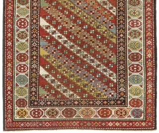 Colorful Caucasian Gendje Rug with diagonal stripes, 4 x 6.8 ft (119x203 cm), ca 1890