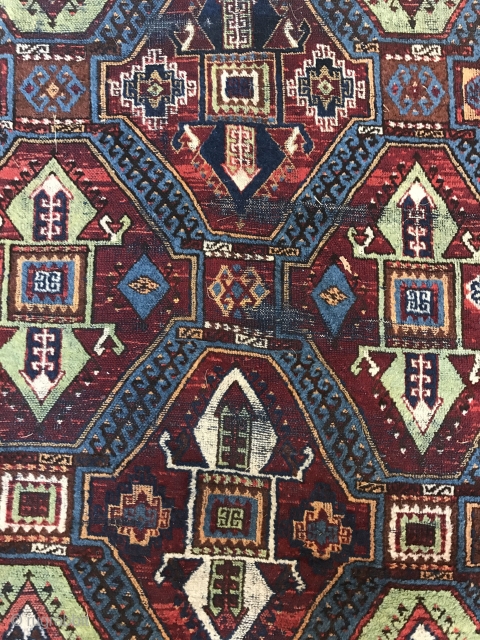 Kurdish rug, iconic design. Worn but classic. Not super old, but an authentic tribal piece.