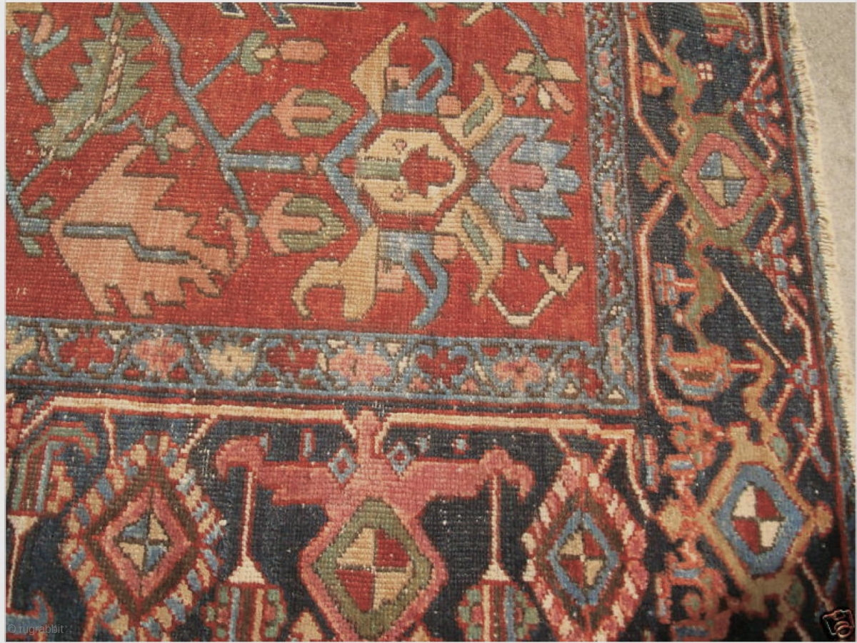 Antique Estate Heriz. It had been lightly painted like the old Sarouks. If you look at the picture of the rug rolled up you can better tell what the original color was, a light stripping will take care of it. Needs work and a cleaning but the price is right. It measures 8 x 11