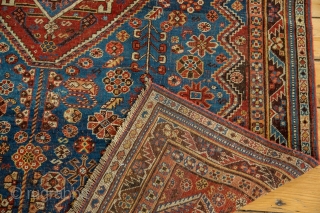 Qashqai Rug, several areas of old mending, great colors, not perfect but priced well. 4'8" x 6'7". Contact for more info.