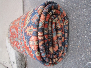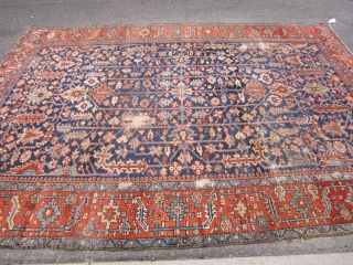 nice antique blue field heriz rug measuring 8' 11" x 11' 9" good condition few worn spot great border design clean no dry rot very solid beautiful colors.