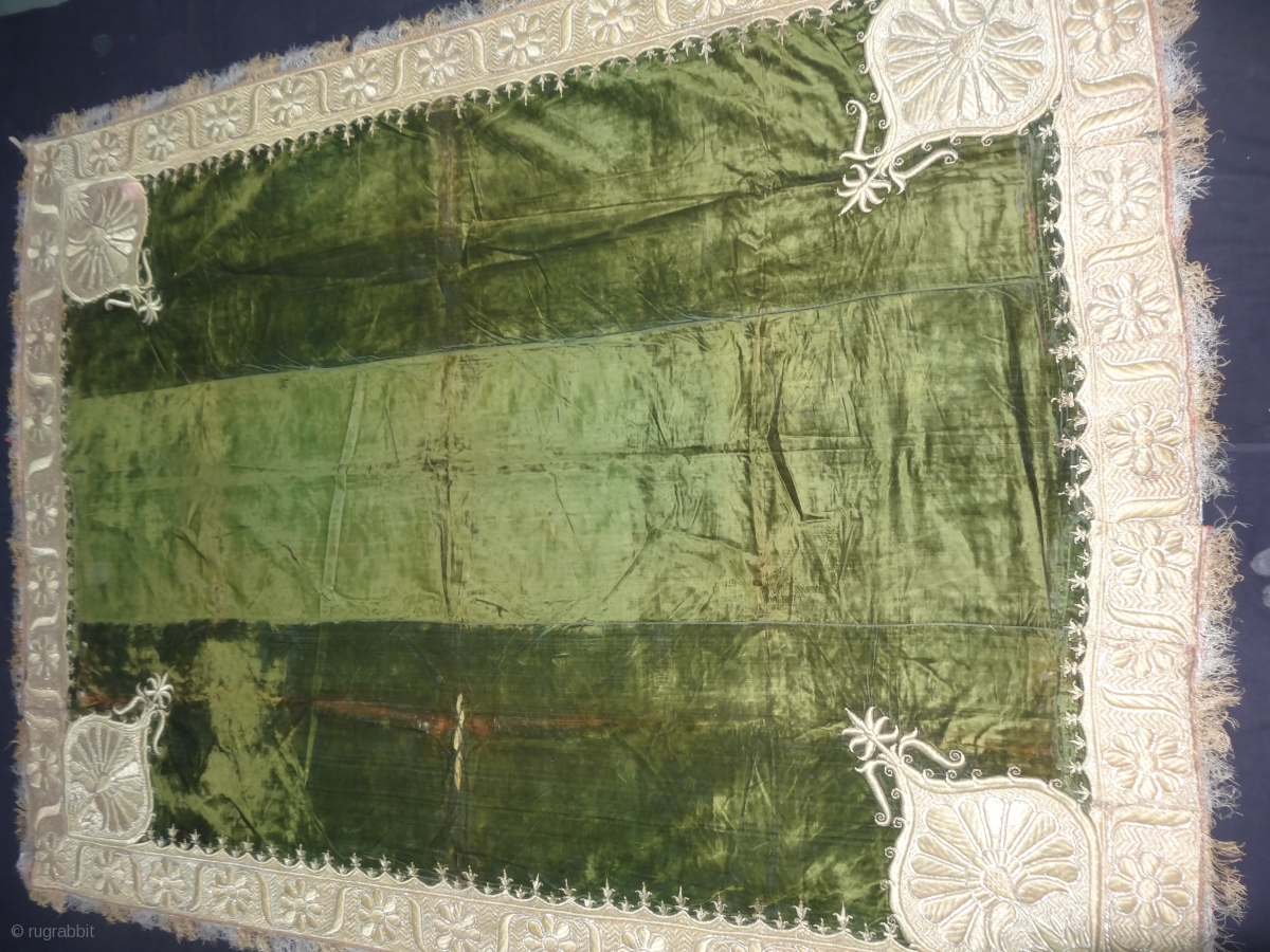Zardozi Kalabattu Embroidery (Real Zari) Work Velvet Carpet, with real zari frills Known as Zaminposh from the Royal Nawab Family of Uttar Pradesh. India.C.1900.Its size is 155cmX210cm. Ask for more Detail Pictures(DSC01802 New).
