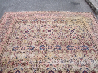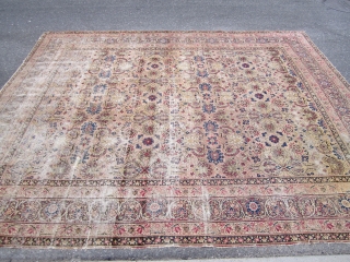solid antique worn ravar allover design persian rug measuring 8' 10" x 10' 10"no dry rot no holes worn condition great distressed look 745 plus shipping thanks.