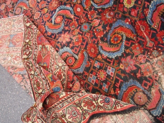 huge antique mahal rug 10' 4" x 13' 4" super rare design solid rug no dry rot clean area or wear and couple of holes as shown beautiful natural colors.