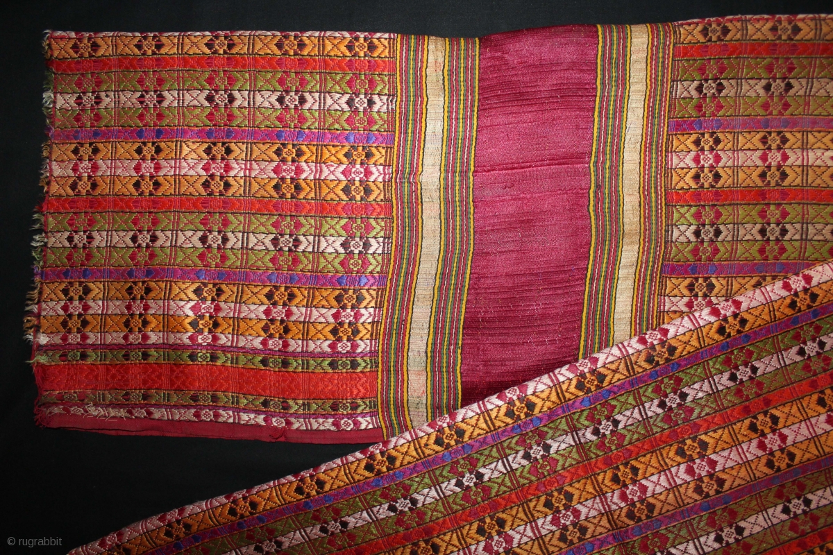 Silk Brocade Lungbis (used as Turbans and Sashes Maldhari Cattle-traders) woven at Nasarpur or Thatta from Sind,kutch and Western Rajasthan India.C.1920.Its size is W-53cm x L-494cm.(DSL02370).
