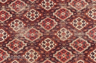 Chaudor/ Chodor Main Carpet, 11ft x 7.7ft. (335 x 235 cm.) late 19 th. century. Characteristic Ertmen Gol design on dark purple-brown ground. sold!