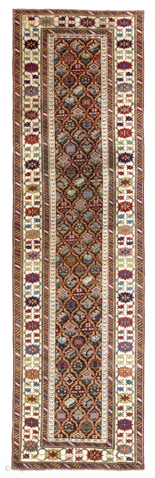 An Antique Kuba Runner, Northeast Caucasus, ca 1860. 34x117 inches - 86x297 cm