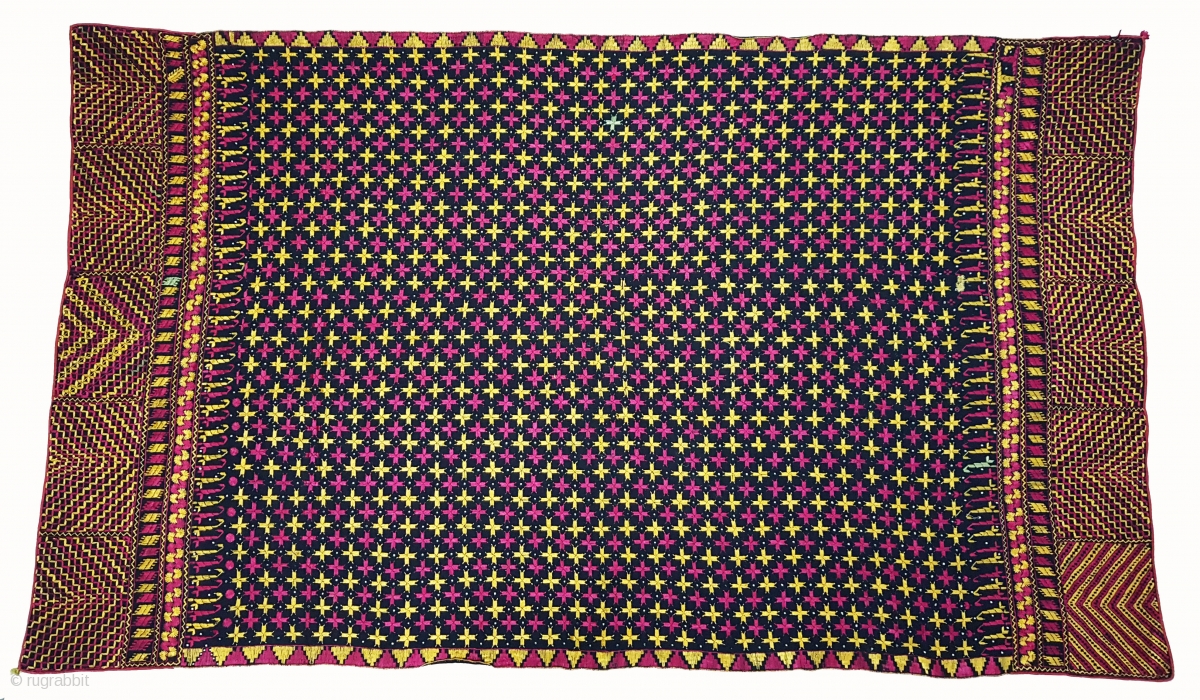 Indigo-Colour Phulkari From East(India)Punjab Region of India. India.Silk on Indigo Dyed Hand Spun Cotton ground.C.1900(105030).