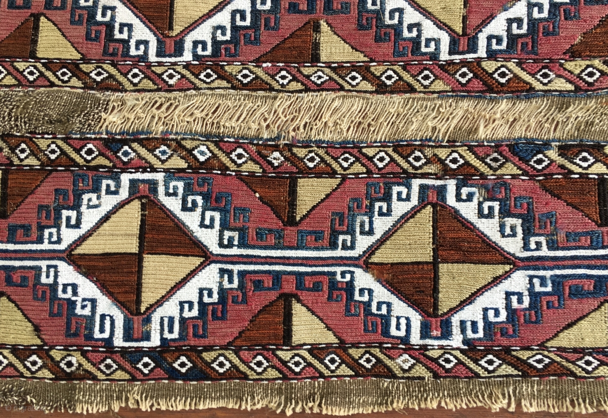 Anatolian cuval or storage bag. Sumack center part. Cm 50x95 ca. 1880/1890. Great pattern with eight hooked medallions. Lovely colors. Not exp.
