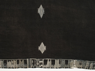 Baknough (woman's head covering), Berber people, Libya. Wool, cotton, indigo, henna, 20th century, 44" to 52" (195 to 132 cm) high by 74" (91.5 cm) long