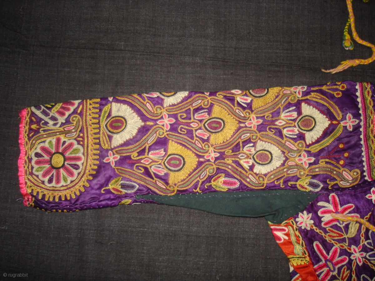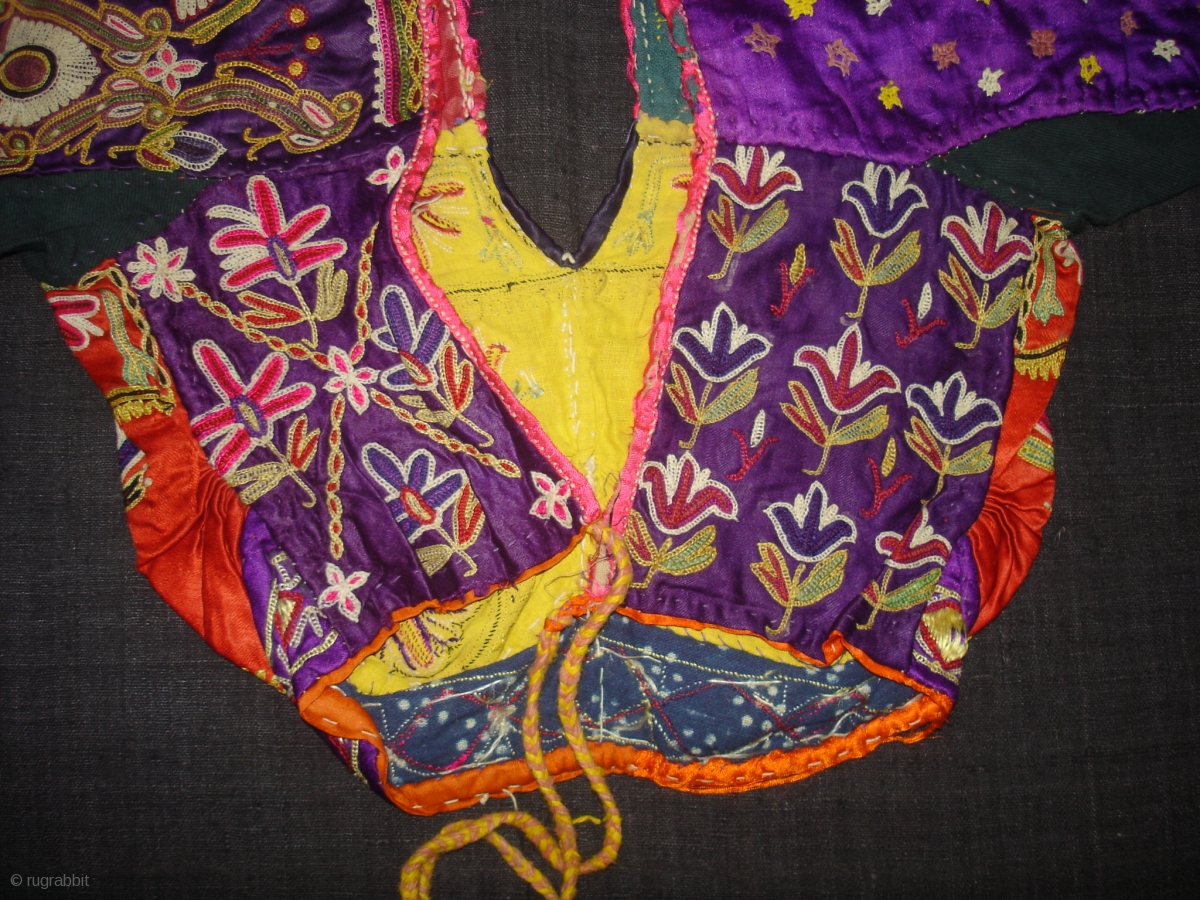 Ceremonial (Mochi Embroidery) Women’s Blouse (Kapada) Fine Chain Stich Silk Embroidery on silk From Kutch Gujarat India.This were Traditionally used mainly Ahir Community of Abdasa Kutch Gujarat India.C.1900(DSC00623).