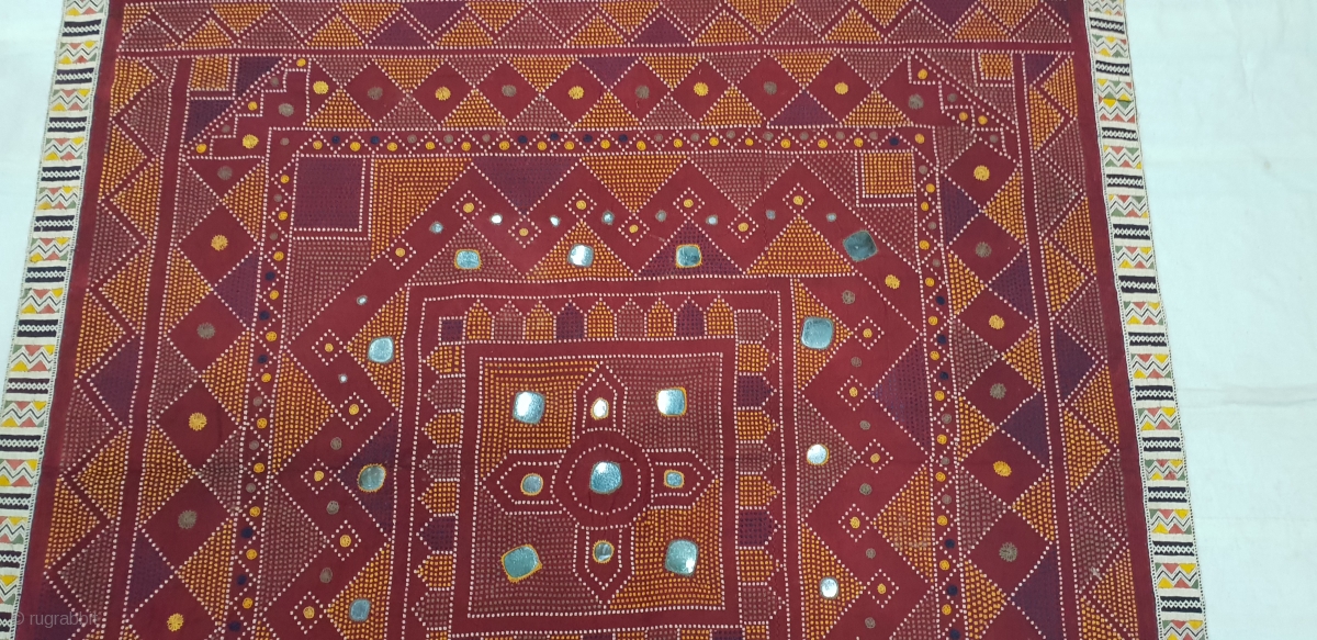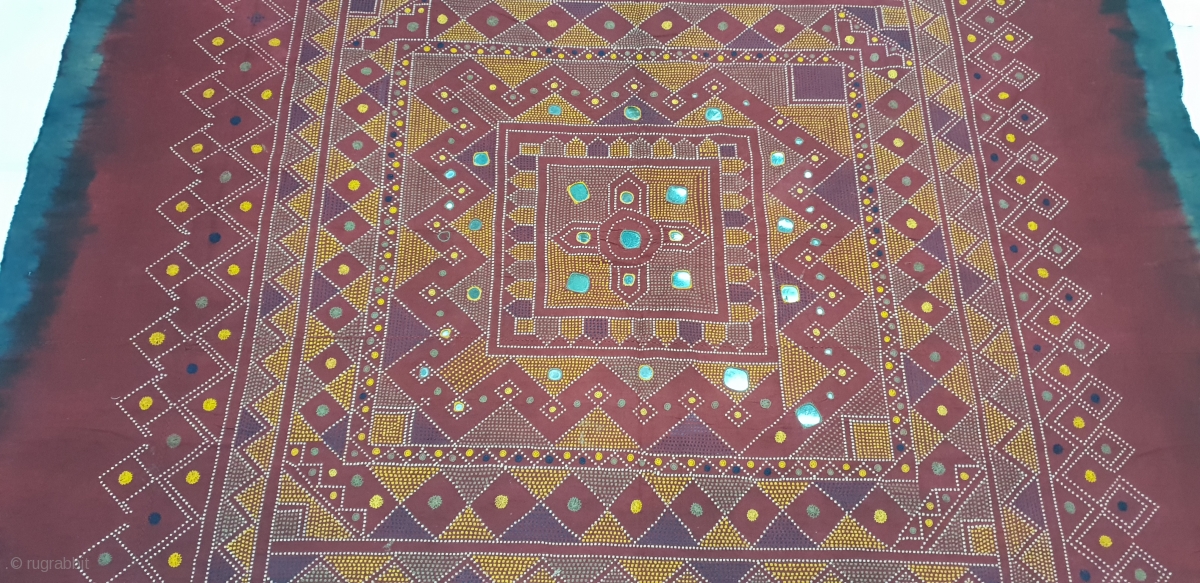 Odhani Bishnoi Shawl From Shekhawati District of Rajasthan, India. Odhani Look Like Tie and Dye,But Embroidered one by one on the cotton Khadder (Village Khadi)cloth with natural colours,From the Villages of Shekhawati District of Rajasthan. This were traditionally used mainly by Bishnoi Group of Shekhawati District of Rajasthan. India.C.1900.Its size is 132CmX207cm(20181125_104339).