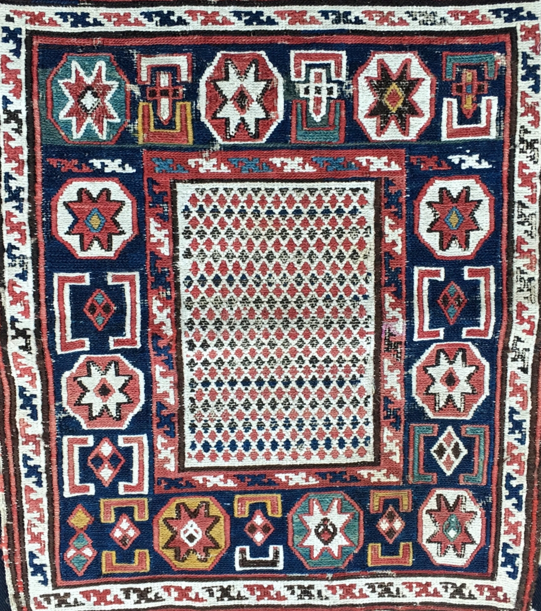 Azerbaijan. Baku 1001 nights + stars and diamonds. Shirwan, Khyzy village?, sumack bag face. Cm 35x43. Second half 19th century. a real beauty with all kinds of symbols. Not only small & beautiful, but also rare and in good condition. Great natural saturated colors. Not to miss for collectors. ---- P.S.....if you have time, go trough this great travel/experience/idea: http://theblacktentproject.com/