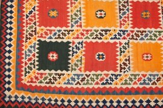 Magnificent antique Qashqai kilim runner. 384x115 in very good condition