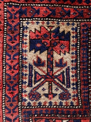 Antique Baluch, 185x88cm, all good colours including some light green silk, original endings and selvedges. a few old repairs in the upper part.