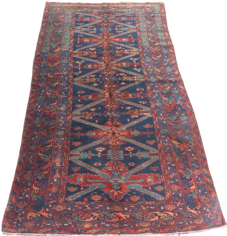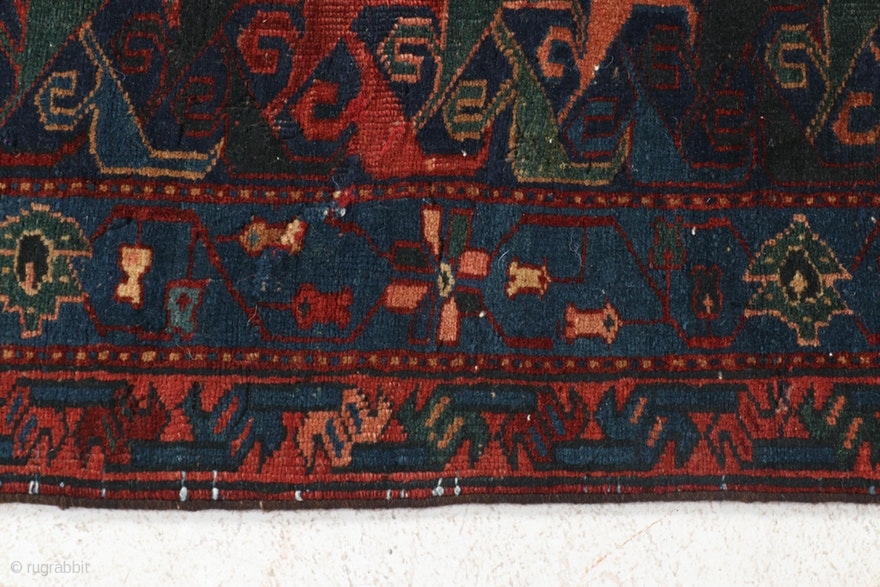 Antique Caucasian Kuba Seychour long rug, circa 1890-1910. 5'2" by 10'5". Some old reweaves in the center. Very reasonably priced.