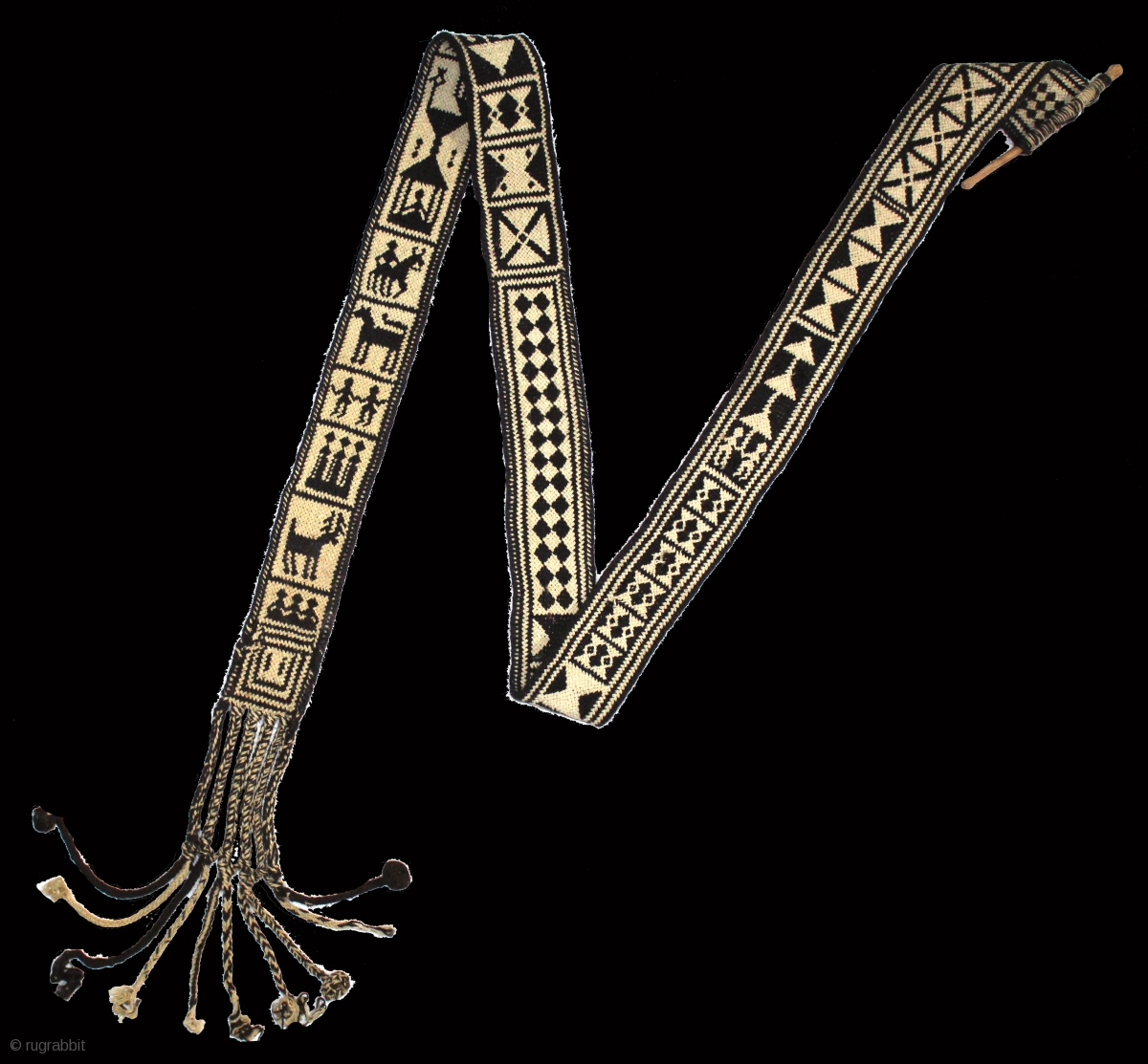 Rare Figurative Tung The Camel Decoration Belt from Rajasthan India.Goat-Hair Belt made using the Ply-Split method.Its size is W-9cm x L-288cm.(DSL03070).