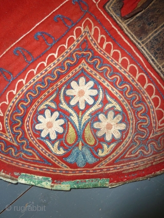 Rare central asian horse cover, felt, broad cloth, embroidery and leather parts. 105 x 68 cm; 41 x 27 inch, good condition