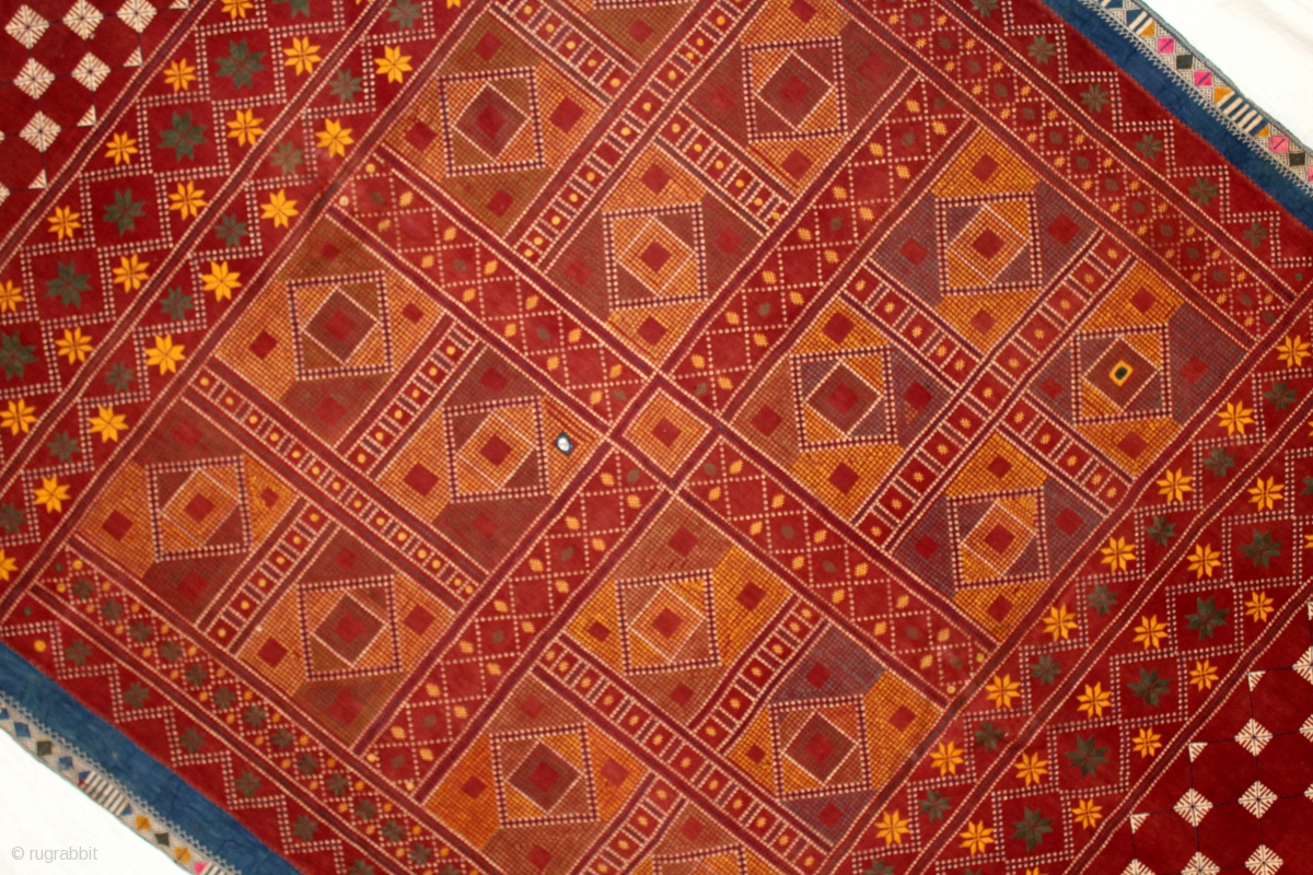 Shekhawati Bishnoi Wedding Shawl From Rajasthan India.C.1900.Very rare and interesting as the embroiderer imitated tie and dye(Bandhni).Embroidered by the Bishnoi community of Rajasthan. Embroidered on Hand Spun Cotton khaddar Cloth.Its size is 150cm x 202cm.(DSL03120).