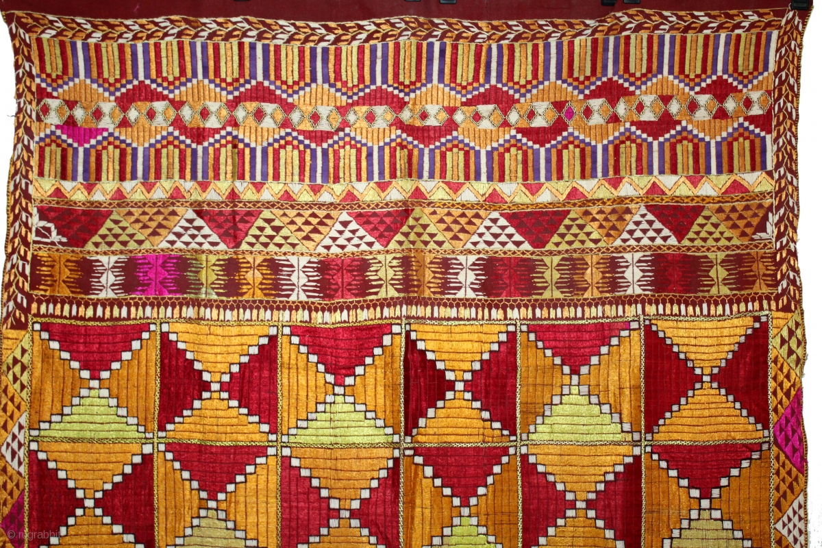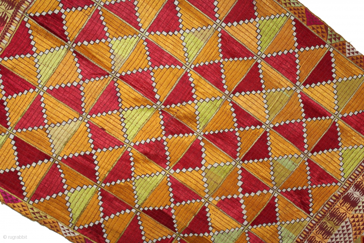 Phulkari From East(Punjab)India Called As Bagh.Rare Pattern Cowdi Design.Beautiful colour Combination of Pallu.Floss Silk on Hand Spun Cotton khaddar Cloth.Mind Condition.(DSL03160).