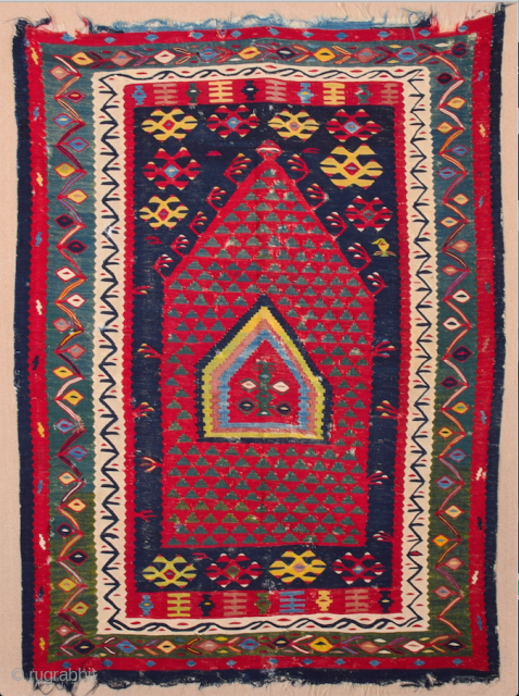 19th Century Anatolian Sharköy Kilim Size 108 x 150 cm It's in good condition.