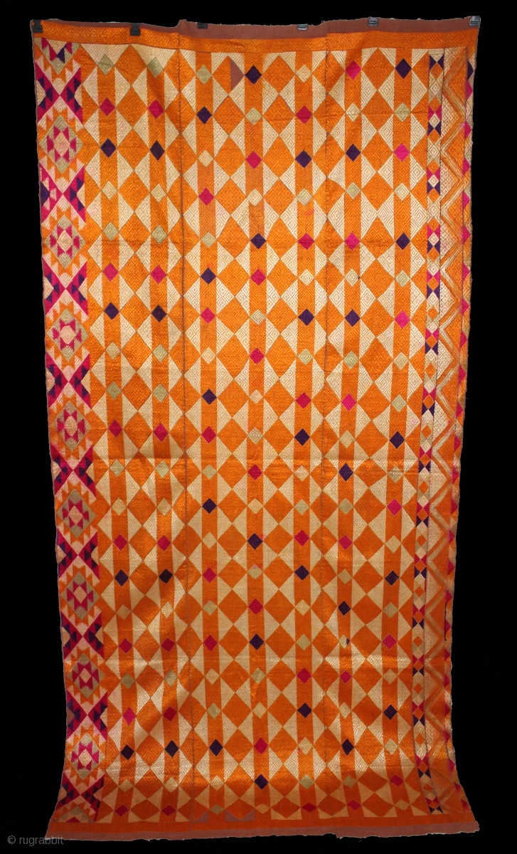 Phulkari From West(Pakistan)Punjab India Called As Diamond Bagh.Very Rare Panchrangi Border Design.Extremely Fine Phulkari.(DSL03280).