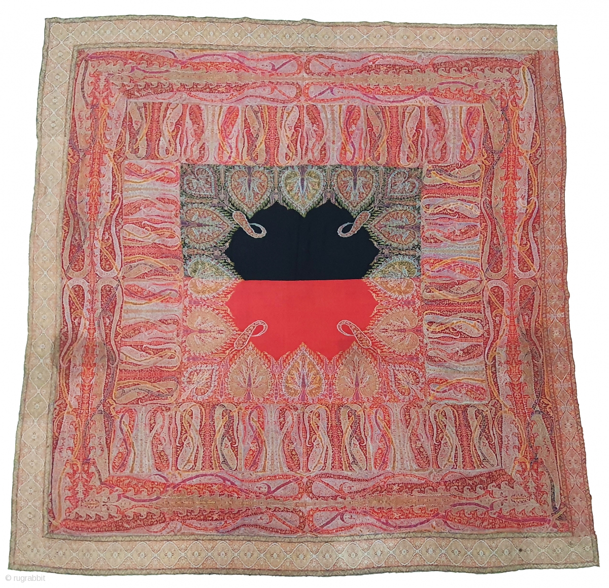 Sikh Period Jamawar Square Shawl (Rumal) From Kashmir, India. India. C.1870-1900.Its Size is 186cmX190cm(20191114_131553).