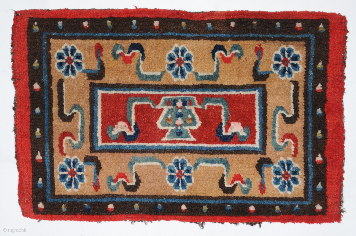 Pillow carpets. Set of 3 14 x 23 each early 20th Century Tibet