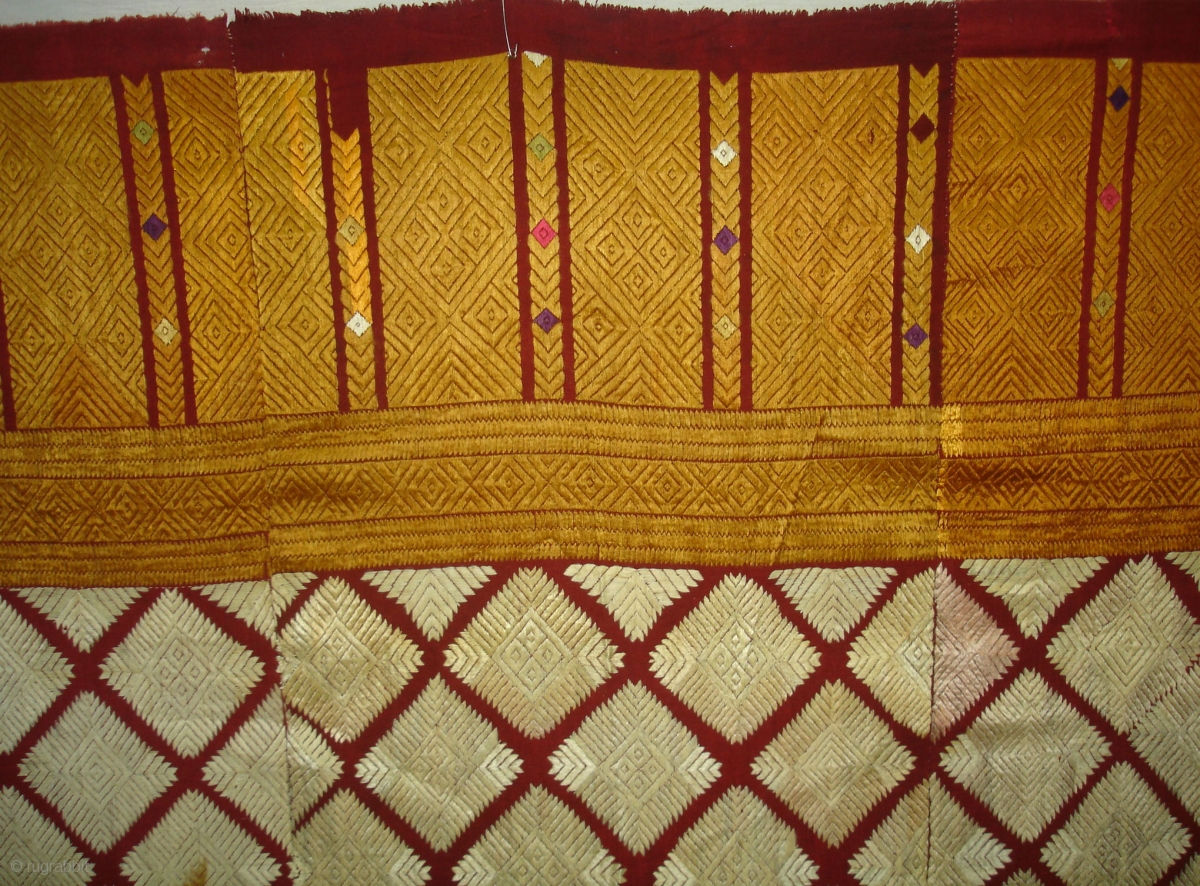 Phulkari From West(Pakistan)Punjab. India.known as Chand Bagh. c.1900. Very Rare influence of Nazar buti in the Middle(DSC04820).