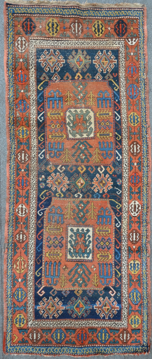 Antique Caucasian Chaili 19th.c. 265 x 106 cm. The carpet needs restoring, several small damages including two holes.