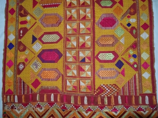 Phulkari From East(Punjab) India.Known as Darshan Dwar.C.1900.Handspun cotton plain weave (khaddar) with silk and cotton embroidery,Showing the Folk Culture and Art of Punjab. Its size is 11cmX205cm(DSC03963).