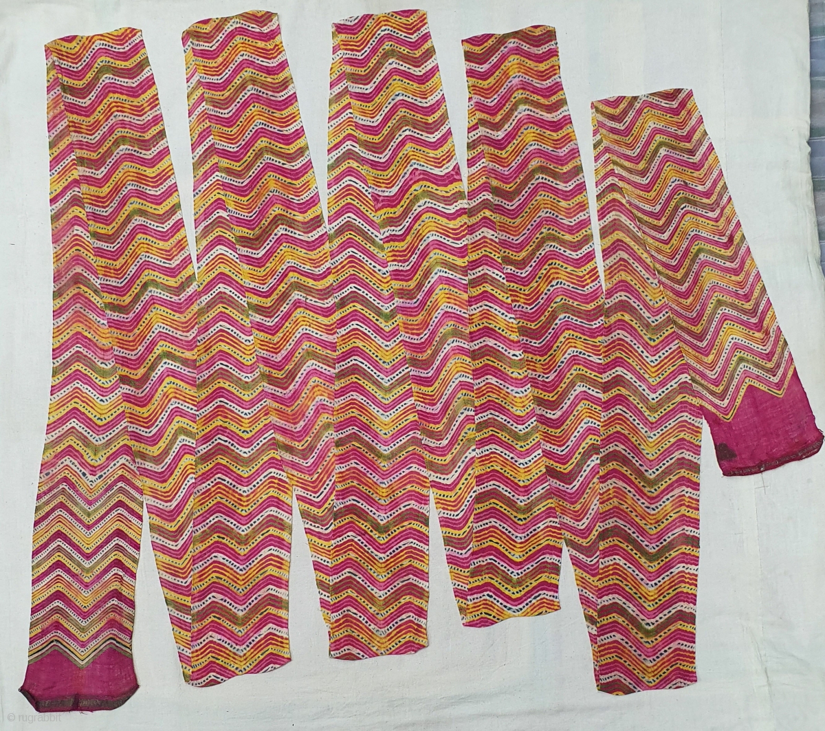 Muslin turban cloth tie-dyed in multiple colours in lahariya (wave) style, From Sekhawati District Rajasthan. India. c.1900. Its size is near by 8 to 10 miters(20200321_144951).