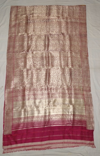 Ashavali Real Zari Silk Brocade Saree (Sadlo). From Gujarat. India. c.1900. This Special motifs (Design) known as Jangla motif (All-Over-Patterning) Its size is 117cmX420cm (dsc08023).