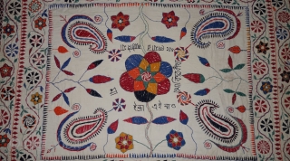 Nakshi-Kantha Embroidered cotton kantha Probably From East Bengal(Bangladesh) region, India.C.1900. Its size is 84cmX104cm. Very Good Condition(DSC08076)